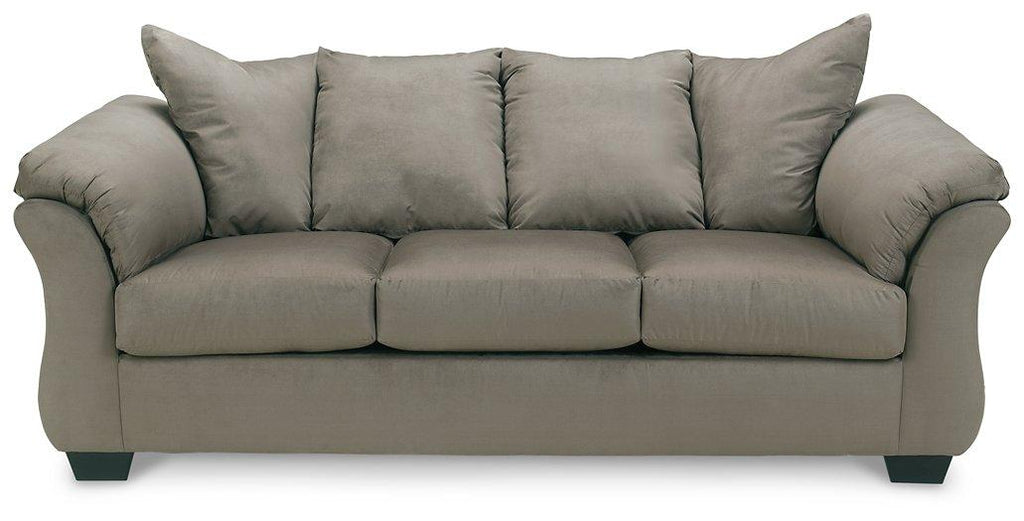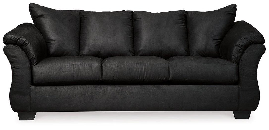 Talk about fine lines and great curves. That’s the beauty of this standout sofa—made to suit your appreciation for clean, contemporary style. A striking flared frame, comfy pillow top armrests and an ultra-soft upholstery that holds up to everyday living complete this fashion statement.