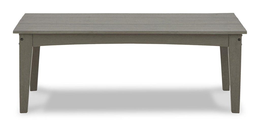 It’s the dawn of a new day for gray. Embrace the style trend with this outdoor conversation set. Each piece is crafted of HDPE material, combining the exceptional durability and weather resistance you need with the ‚wood look‚ you love. The coffee table and comfortably cushioned seats take alfresco living to a whole new level. A slatted table top infuses a plank-style, farmhouse-inspired touch and naturally sheds rainwater. Rest assured, the thick cushions on the sofa and lounge chairs are wrapped in Nuvella® high-performance fabric that’s fade-resistant, stain-resistant and a breeze to keep clean.